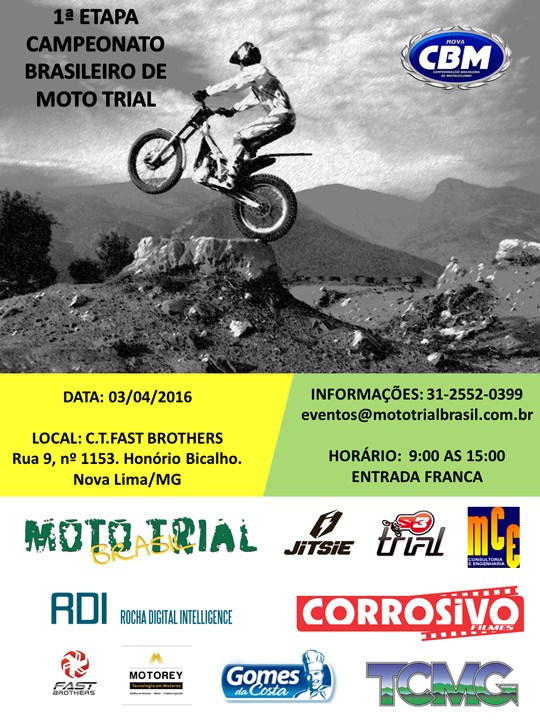 O Campeonato Brasileiro de Trial está prestes a largar. A competição, reativada no último ano, vem com tudo para a temporada 2016. A abertura será no dia 3 de abril, em Honório Bicalho, Nova Lima (MG) das 9h às 15h e tem entrada franca.